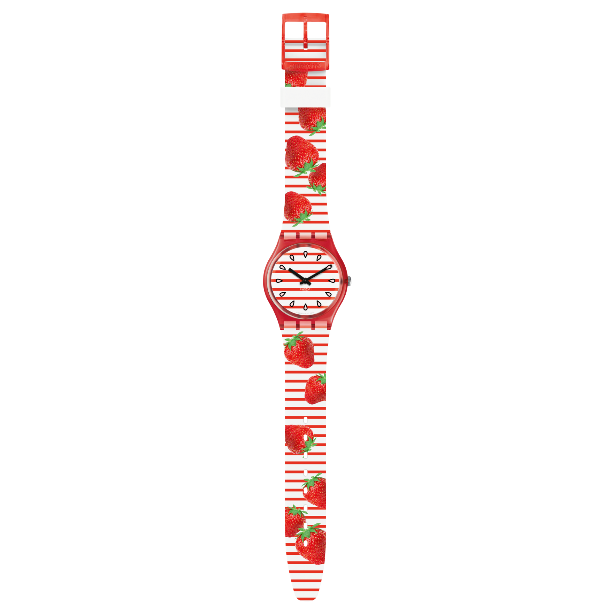 Модель GR177 – это воплощение сочной радости и беззаботного летнего дня. Сочный клубничный корпус и игривый красно-белый ремешок в полоску с изображениями спелой клубники создают настроение праздника и сладкой жизни. Этот аксессуар словно сорван с самой солнечной грядки – он свежий, яркий и невероятно аппетитный. Минималистичный дизайн с двумя стрелки позволяет рисунку говорить самому за себя, превращая часы в главный акцент вашего образа. Носите настроение летнего пикника каждый день!
