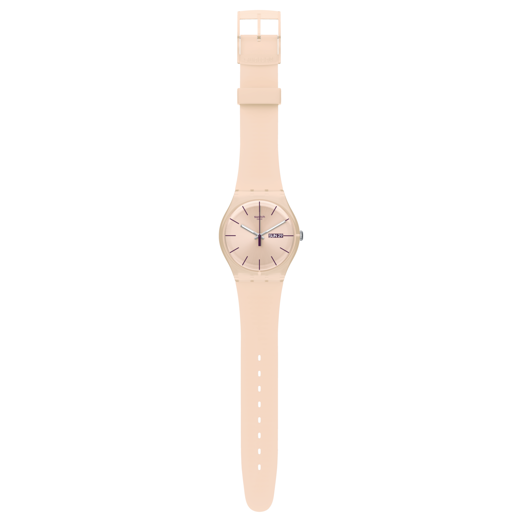 С дерзкими и прекрасными часами ROSE REBEL (SUOT700), оснащенными бледно-розовым силиконовым ремешком и роскошным циферблатом с темно-фиолетовым принтом, вы всегда будете в центре внимания!